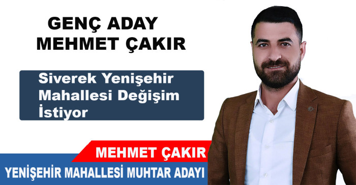 Genç, dinamik ve geniş bir kitleye sahip Çakır, Yenişehir Mahallesinde muhtar seçilmesi yüksek adaylardan biri olarak görülüyor.