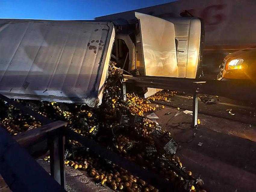 Kazada portakal kasaları yola saçıldı